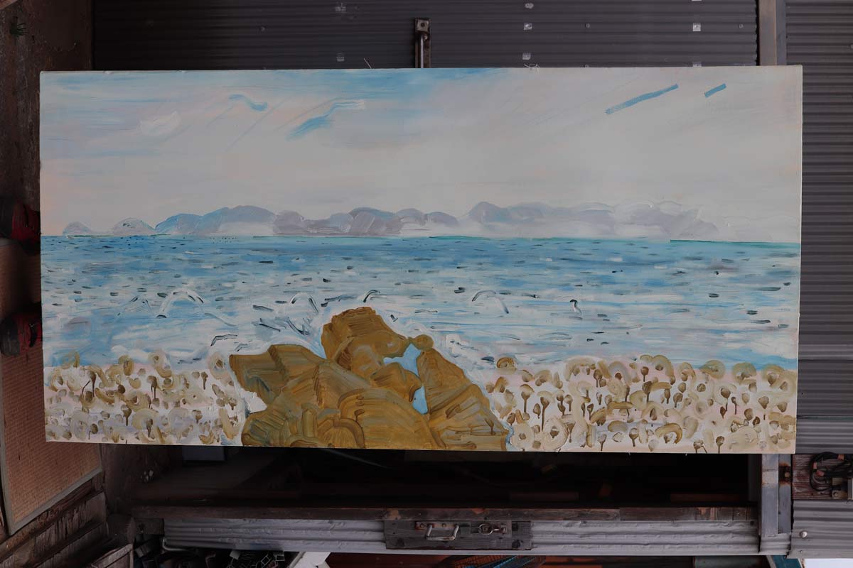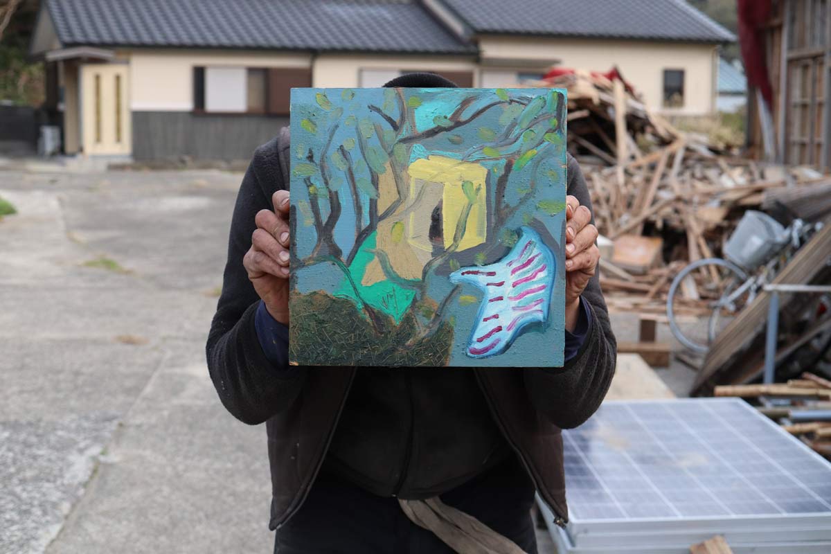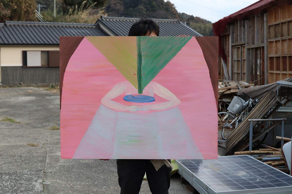 木枠、キャンバス、半油性下地、木蝋、顔料、樹脂、乾性油、油彩